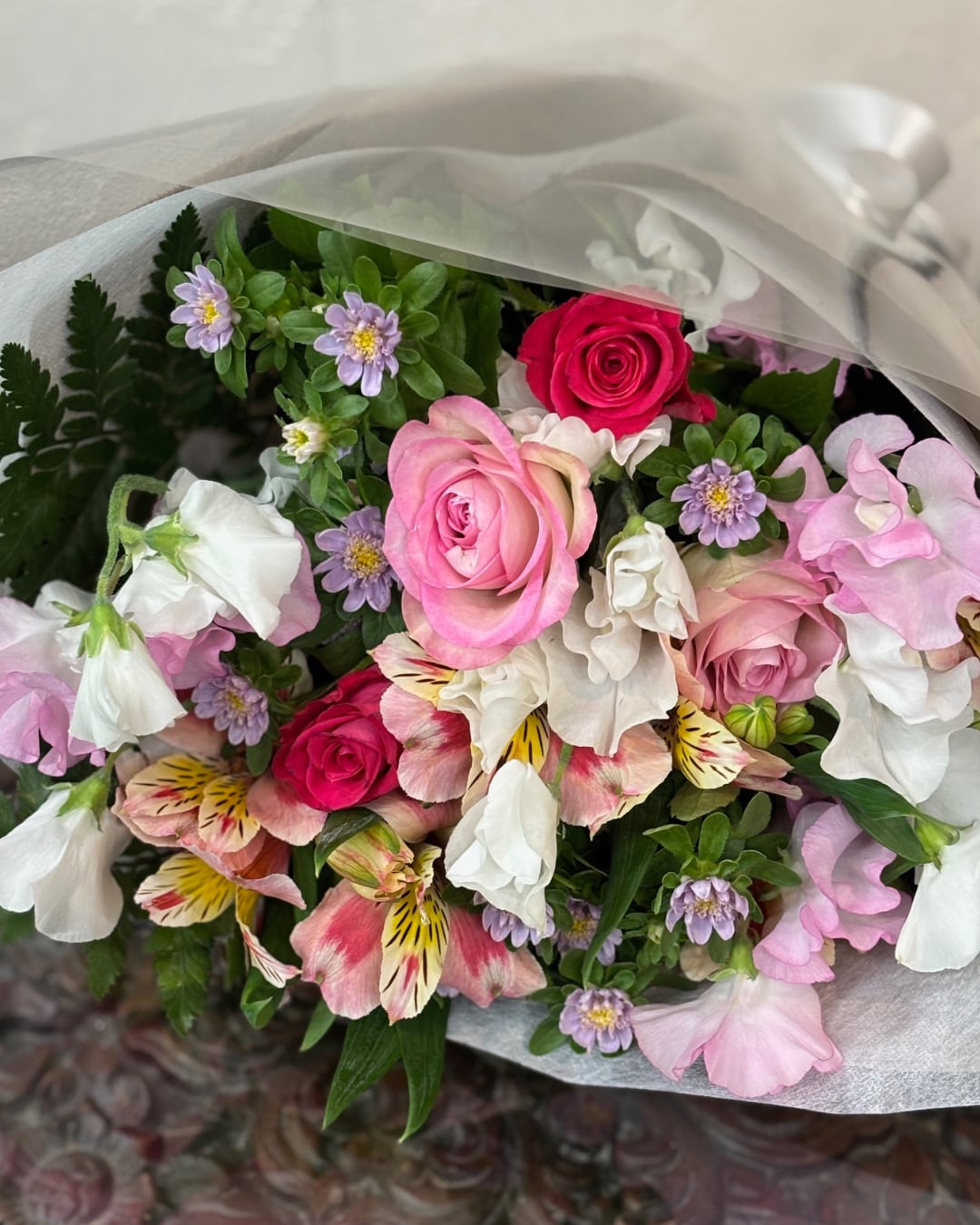 ピンク系でまとめた可憐な花束