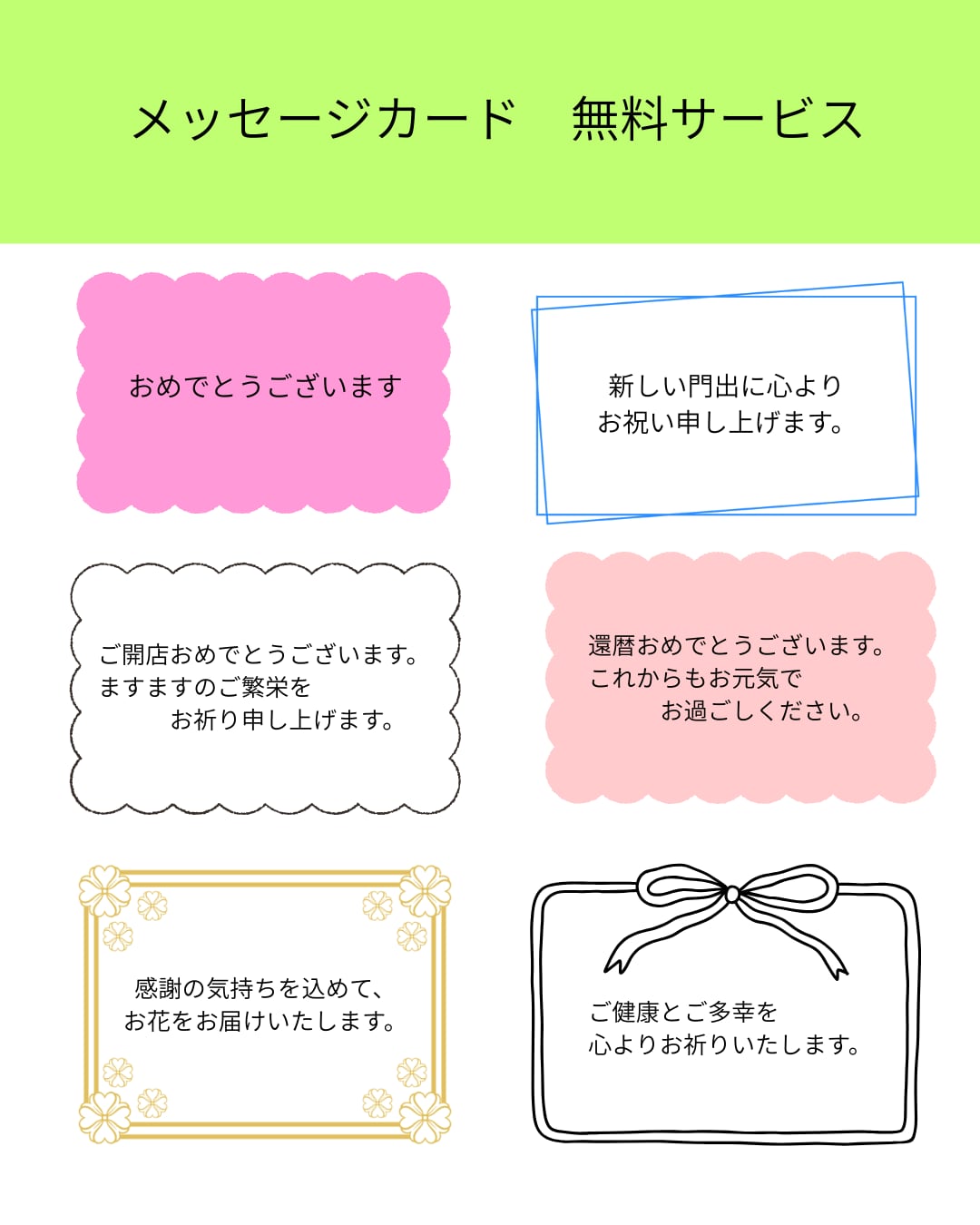 ご希望の方には、無料でメッセージカードをお付けします。