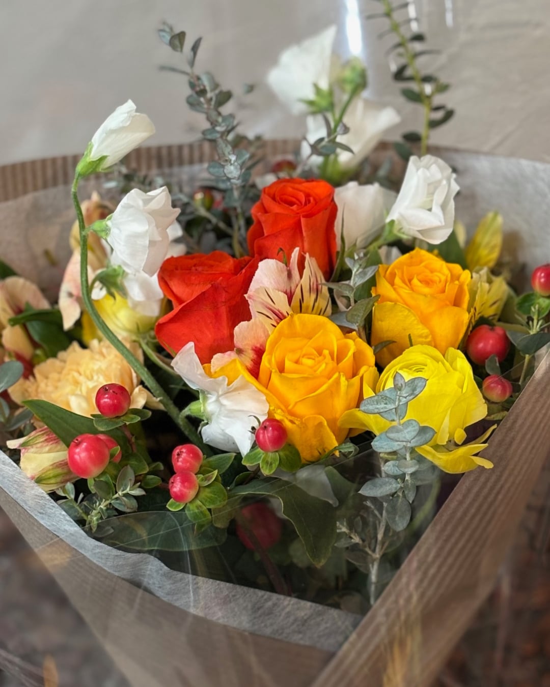 イエロー・オレンジ系でまとめた華やかな花束